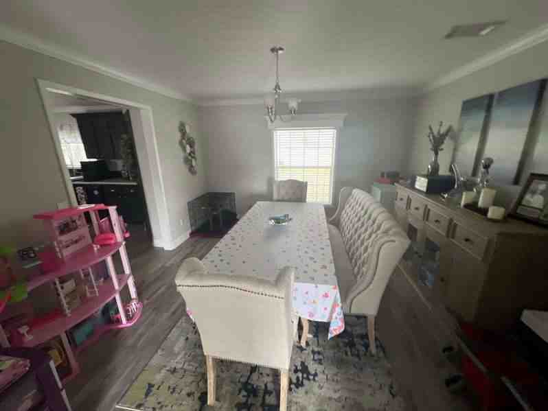 Inside, you’ll love the open, inviting layout. The spacious living area flows seamlessly into a dedicated dining space and a well‑appointed kitchen with abundant cabinetry. The primary suite offers a roomy retreat with a private bath, while four additional bedrooms provide incredible flexibility for guests, hobbies, or office space. Durable LVP flooring, plush carpeting, and central electric HVAC add comfort throughout.